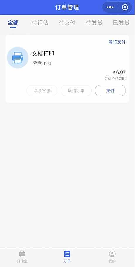 4. 然后在订单管理下,可支付订单费用,支付完成后等待系统的打印即可。