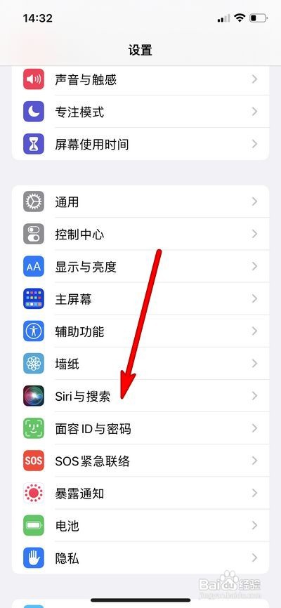 第一步:打开iPhone13的设置,点击“Siri与搜索”进入,如图所示。