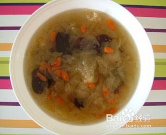 1、将银耳用冷水泡发后切成细丝,锅中加入适量清水,放入冰糖熬化,加银耳丝煮至黏稠,装碗加入枸杞即可。2、锅中加适量清水,放入冰糖熬化,海藻切碎后放入煮至黏稠即可。特点:口感爽滑,清甜营养。