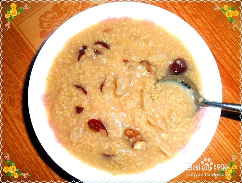 冬日来临,喝点汤粥,既暖身又进补。今个做的大枣小米银耳粥,还是蛮不错地。工具/原料more大枣(10个)银耳(1朵)小米(半勺)核桃两个冰糖适量方法/步骤1/12分步阅读