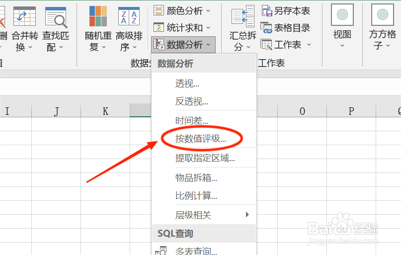 3/6然后我们点击【数据分析】,在下拉菜单栏中,选择【按数值评级】。