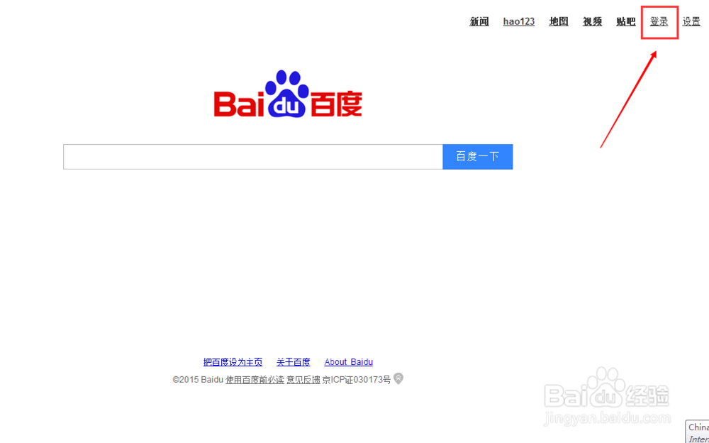 首先我们需要打开百度的搜索引擎首页,点击右上角的“登录”