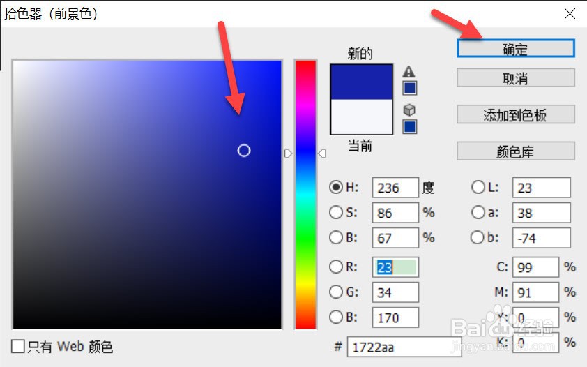 进入拾色器,选择颜色点击确定。