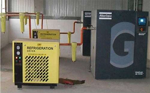 压缩机工作时,空气经过自洁式空气过滤器被吸入,通过PLC自动清洗过滤器,空气在经过进口导叶自动调节后进入一级压缩,经一级压缩后的气体温度较高,然后进入中间冷却器进行冷却(水走管内,气走管外,中冷器的水流量要求为110m/h)之后进入二级压缩系统。