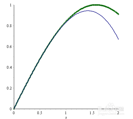 方法/步骤4:多条线绘图1/1plot(, x=0..2, color=, style=);
