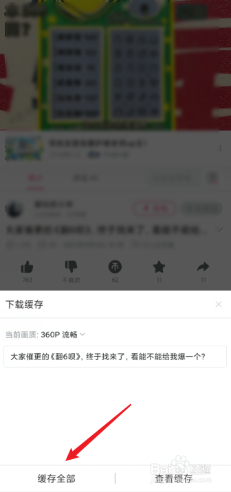 4/4最后,进入下载缓存页面,点击缓存全部,就可以下载b站视频到手机本地