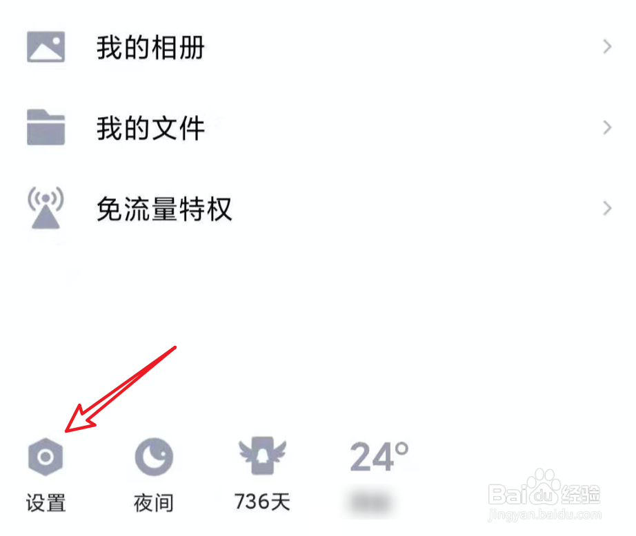 打开手机QQ,点击头像打开侧栏后,点击这里的设置。