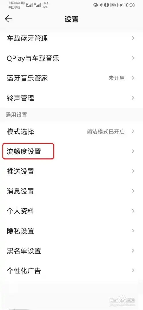 2/3进入设置列表,打开【流畅度设置】。