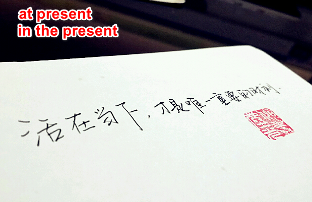 at present在句子中做时间状语,in the present作为固定短语,表示在现在之意,相当于 at this time、now。