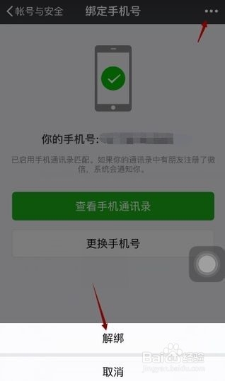 2/5点击已绑定的手机号码,然后点击右上角按钮,选择【解绑】