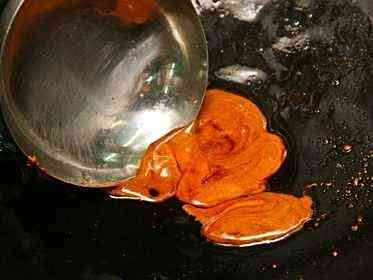 2、小火热锅,直接倒入少许油并放入砂糖2大匙,拌炒至如图片中的半融状态。