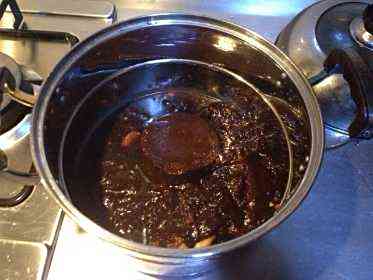 6、待水滚后,下月桂叶、桂皮、碎裂的草果、青耆、桂枝、八角,煮滚即成为卤汁。