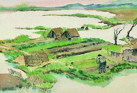 四月的江南,山坡是绿的,原野是绿的,绿的树,绿的草,绿的禾苗,展现在诗人眼前的,是一个绿色主宰的世界。在绿色的原野上河渠纵横交错,一道道洋溢着,流淌着,白茫茫的;那一片片放满水的稻田,也是白茫茫的。