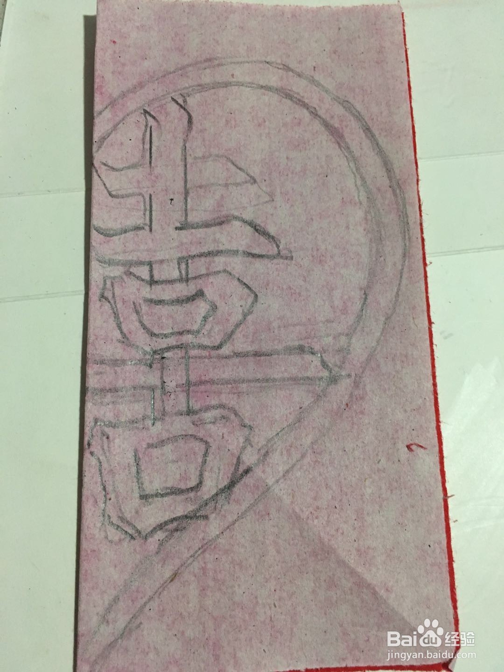 3/6第三步 画完爱心之后 再在爱心里面画上双喜的一半 并且要双边线