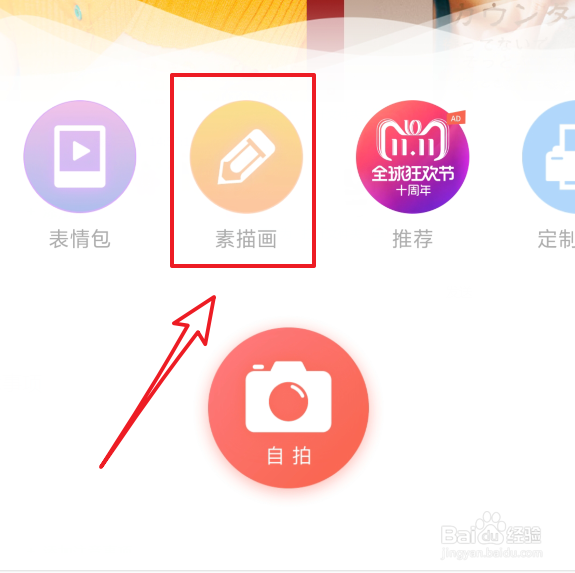 2/7点击进入应用后,软件的主界面会显示很多功能图标,我们选择“素描画”的选项进入。