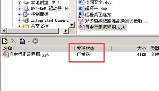8、当文件发送成功之后,在如下图所示中显示,红色框内显示“已发送”。