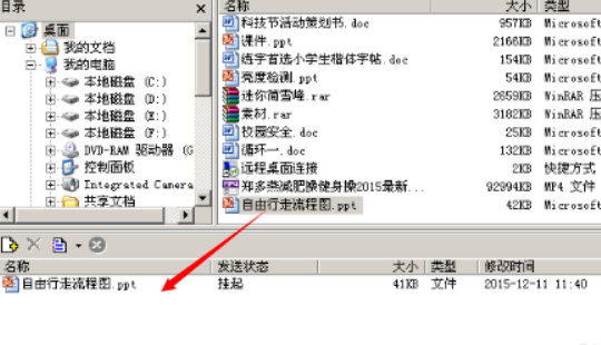 6、如下图所示,这里选择“自由行走流程图.ppt”,单击鼠标左键拖动,拉到下方窗口内松开鼠标。