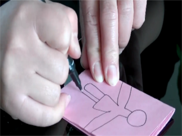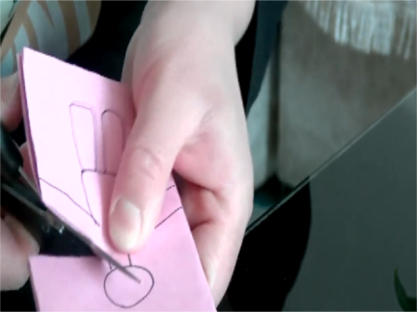 5.使用剪刀沿着小人的整体轮廓剪去多余的部分,注意小人头部下方和手部不要剪断。
