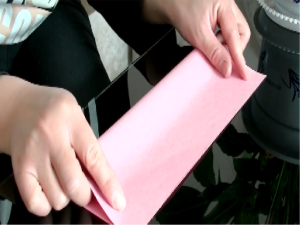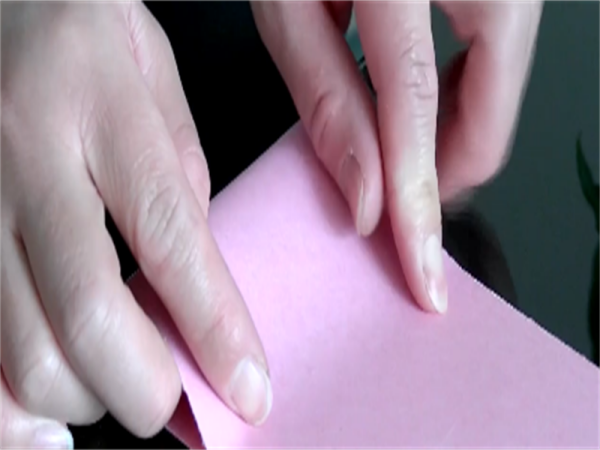1.拿一张全新的A4纸,选择你喜欢的颜色。然后水平折叠并沿折叠线将其切成两半。