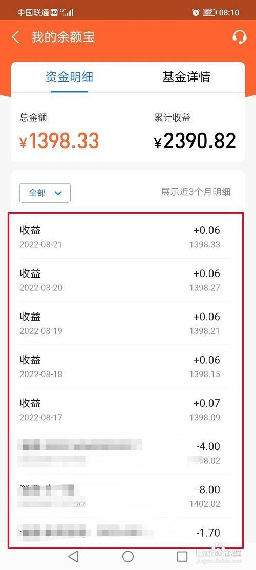 5/5第五步我们也可以看一下余额宝的余额明细,根据需要使用。如下图所示