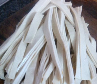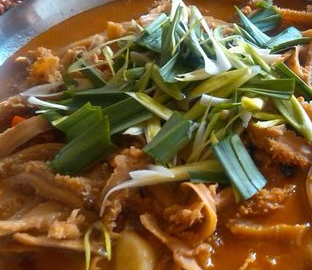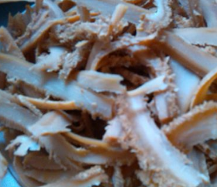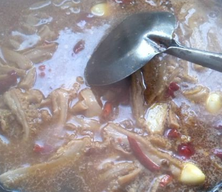 十二、将烧好的牛肚倒在千张上面,加上香蒜即可。