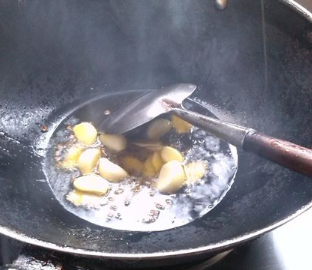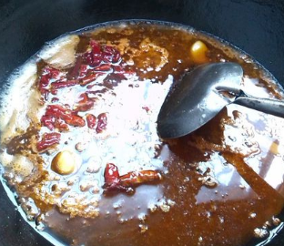 四、锅里放入适量油,放入花椒炸出麻香味;