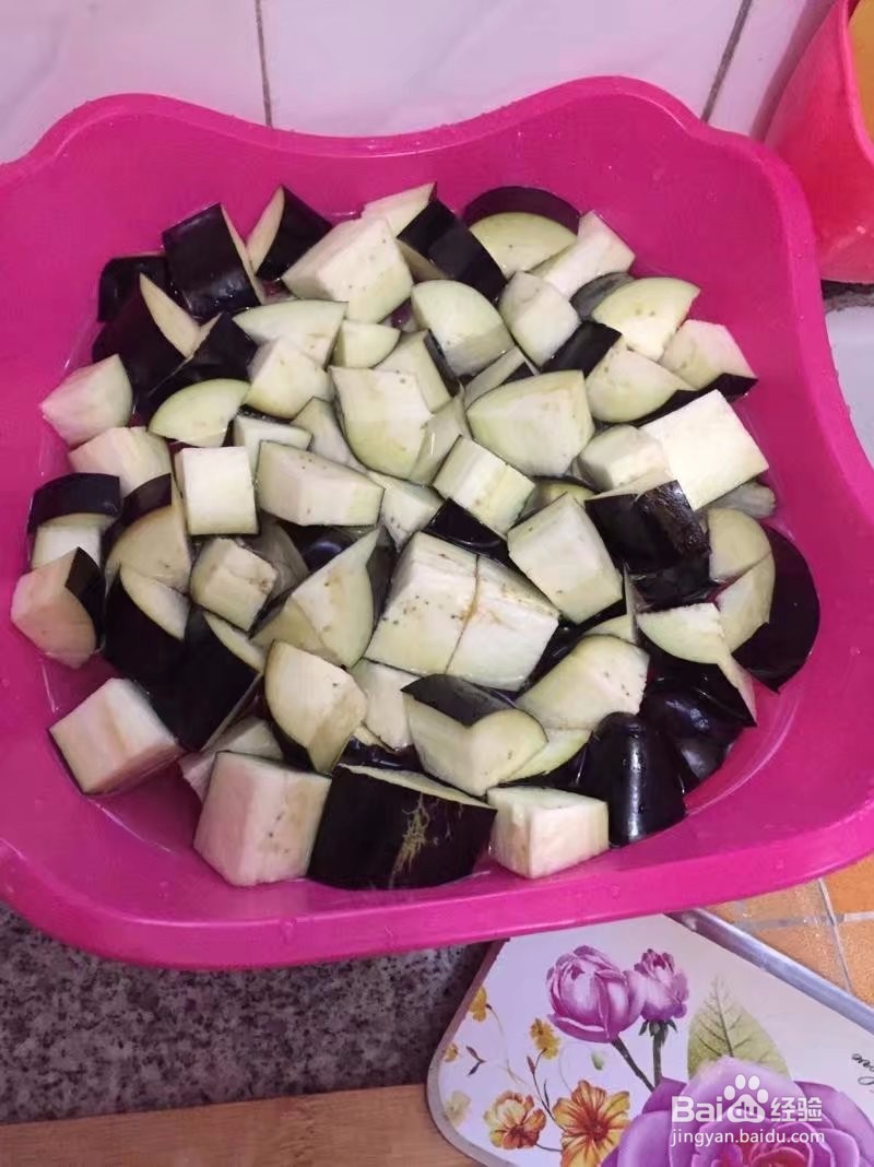 2/6热锅中倒油,将茄子倒入,快速翻炒,大火