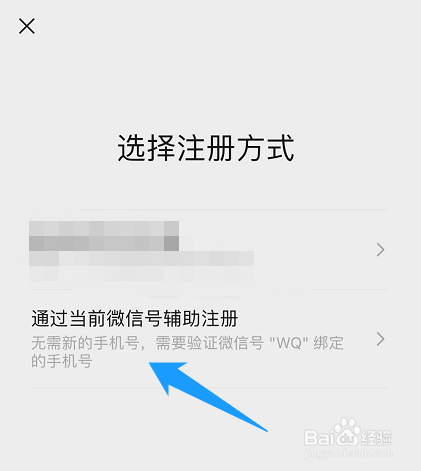 点击【通过当前微信号辅助注册】选项进入注册即可,如图所示: