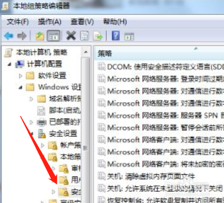 依次点击展开计算机配置—Windows 设置—安全设置—本地策略—安全选项。