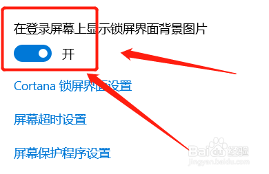 将“在登录屏幕上显示锁屏界面背景图片”点亮即可。