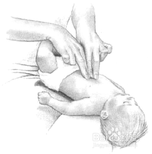 5次压胸如果按照上面的办法仍未排除,实可用五次压胸法。使患儿平卧,面向上,躺在坚硬的地面或床板上,抢救者跪下或立于其足侧,或取坐位,并使患儿骑在抢救者的两大腿上,面朝前。抢救者以两手的中指或食指,放在患儿胸廓下和脐上的腹部,快速向上重击压迫,但要刚中带柔。重复之,直至异物排出。