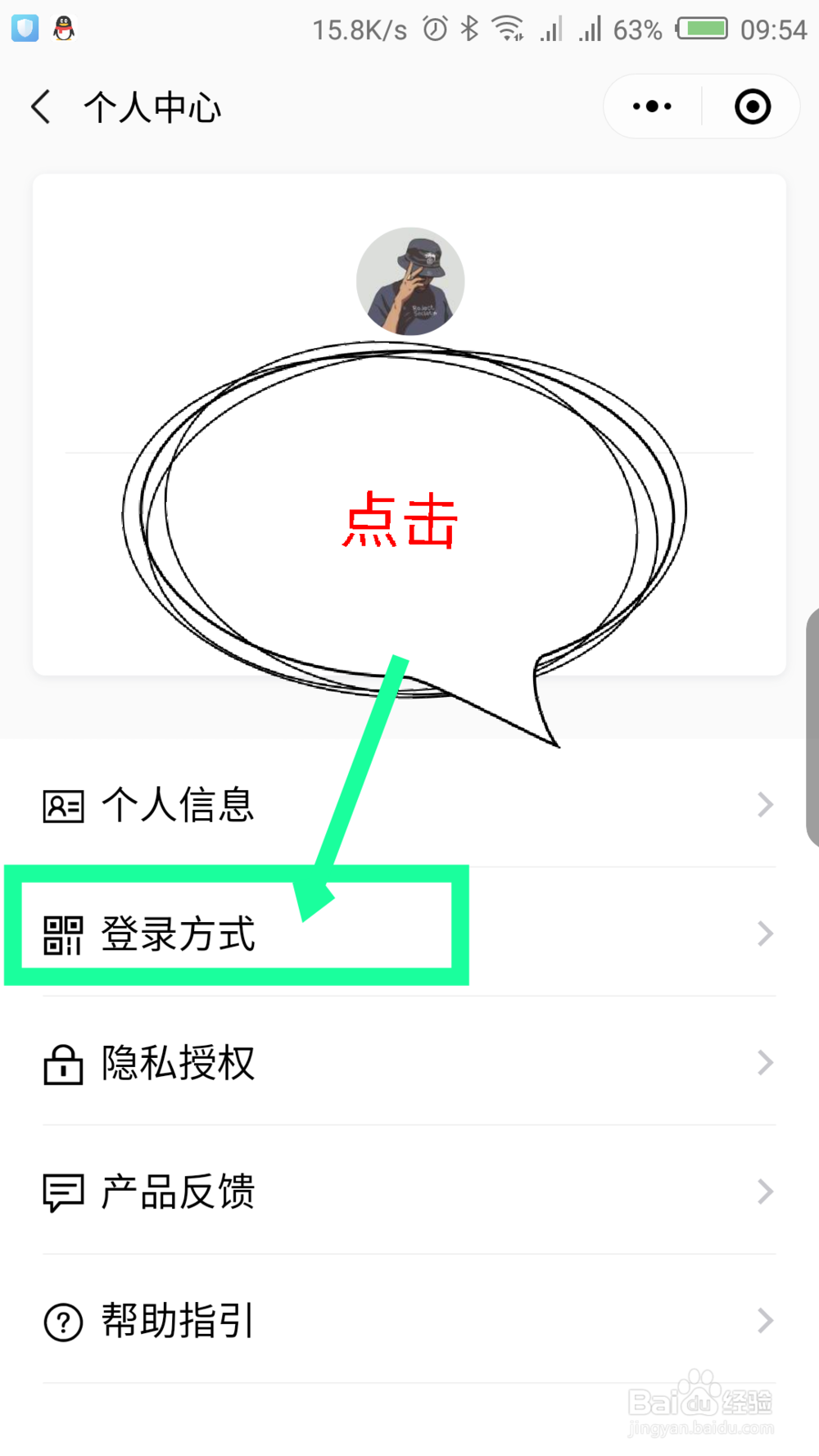 3/5在打开的登录的个人中心界面,能看到登录方式选项,点击打开。如图所示