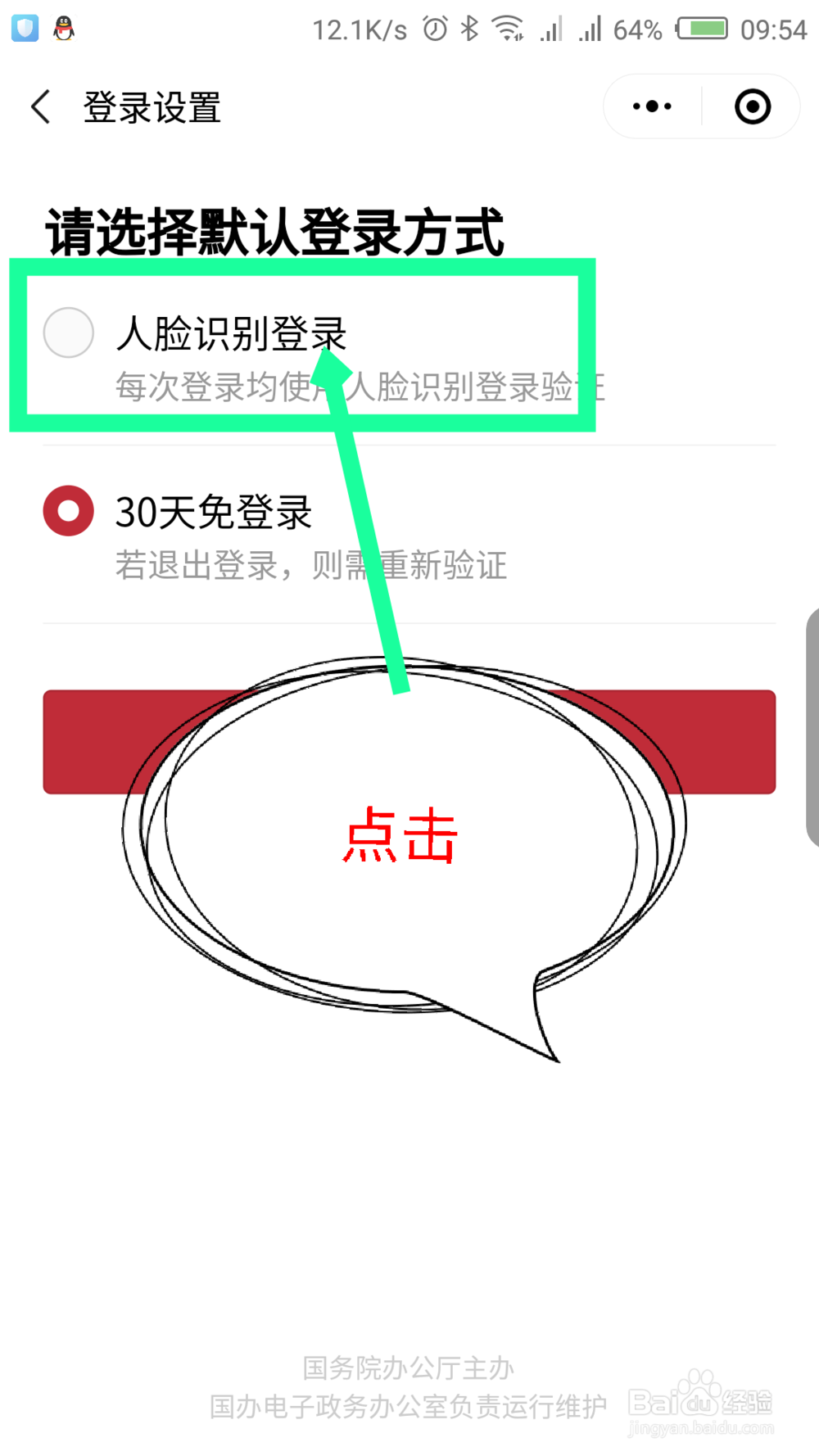 4/5在打开的登录设置界面,可以设置人脸识别登录和30天免登录选项,点击上面的人脸识别登录。如图所示