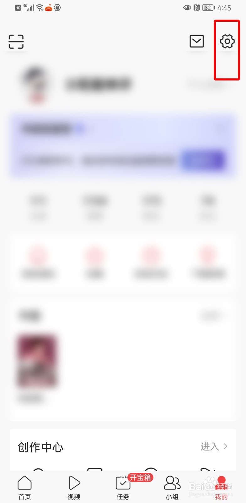 进入今日头条,点击下方菜单栏中我的,然后点击右上角的齿轮设置图标。