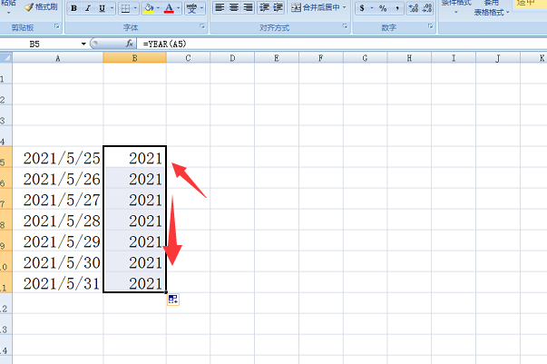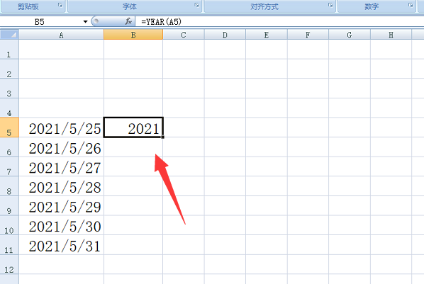 4、此时即可看到已经将该日期的格式设置为了只有年份了。