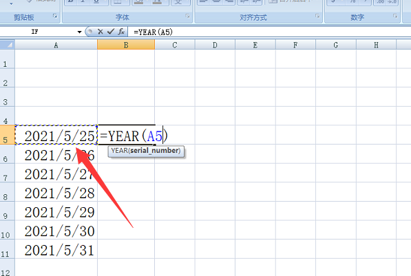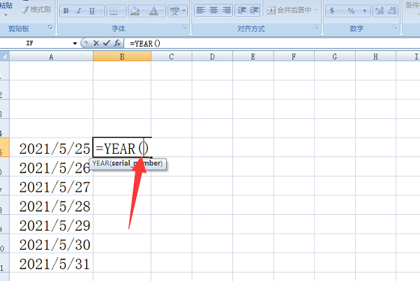 可以借助EXCLE中的YEAR公式来实现。在该文件的其他单元格输入=YEAR(),括号内选择目标日期并按回车即可。具体的以WIN10操作系统的EXCEL2007为例,设置方法如下: