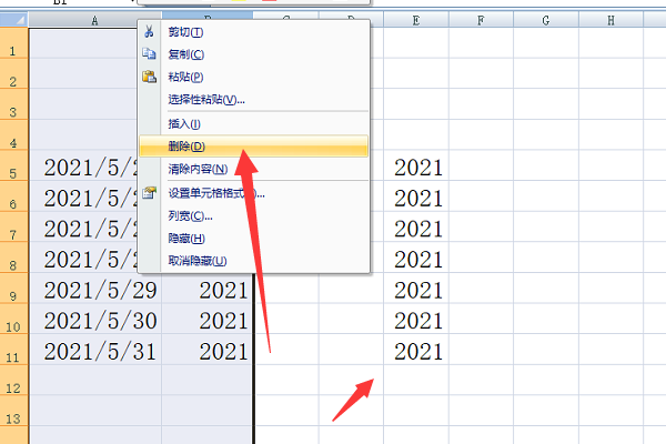 9、在将年份数据粘贴完成以后,选中不需要的数据进行删除即可。