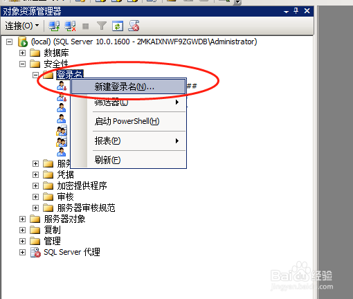我们知道数据库是保存我们重要资料的重要文件,如果用数据库管理系统创建我们的数据库,是非常的重要。现在随着社会的快速发展,数据库得到了快速的应用,所有的应用程序都会是基于数据库平台运行的,数据库给前端应用程序提供了数据支撑。所以作为一个数据库管理员或者说是想管理好数据库的你来说,有必要懂得如何给数据库建立登录名,因为数据库涉及很重要的数据和资料,给不同的用户建立不同的登录名,可以有效的进行控制用户的访问权限,进而来保障数据库的安全。这是没有一个数据库管理员必须会,那么怎么给数据库建立登录名呢?跟小编一起来学吧工具/原料more电脑sql server方法/步骤1/5分步阅读