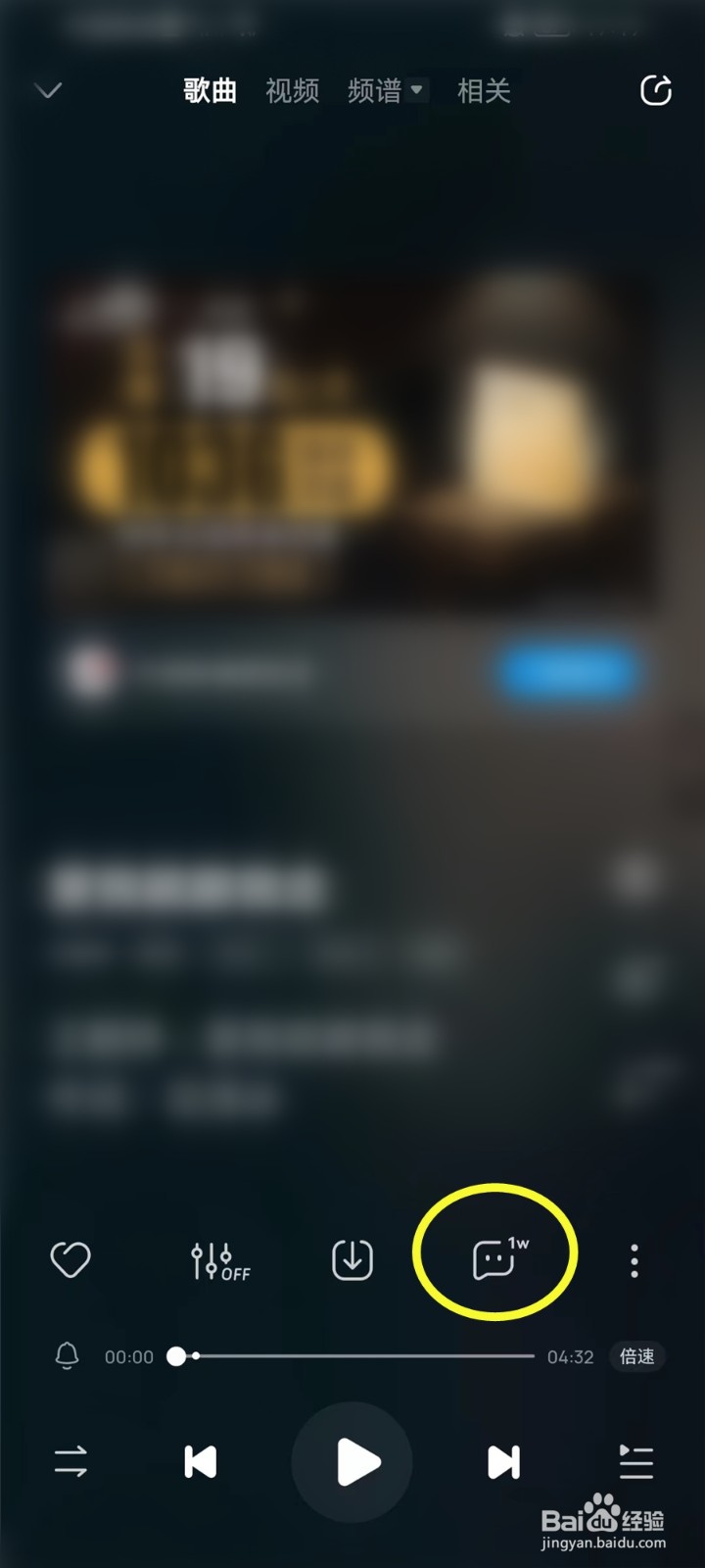 进入到歌曲播放页,打开歌曲评论。