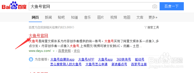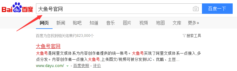 在百度搜索里输入:”大鱼号官网“点击百度一下