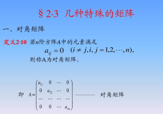 对角矩阵是一个主对角线之外的元素皆为0的矩阵,常写为diag(a1,a2,...,an) 。对角矩阵可以认为是矩阵中最简单的一种,值得一提的是:对角线上的元素可以为 0 或其他值,对角线上元素相等的对角矩阵称为数量矩阵;对角线上元素全为1的对角矩阵称为单位矩阵。对角矩阵的运算包括和、差运算、数乘运算、同阶对角阵的乘积运算,且结果仍为对角阵。