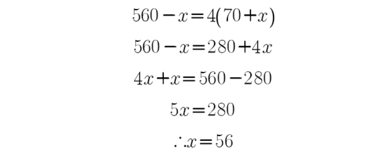 甲数是560乙数是70甲给乙多少后甲是乙的4倍