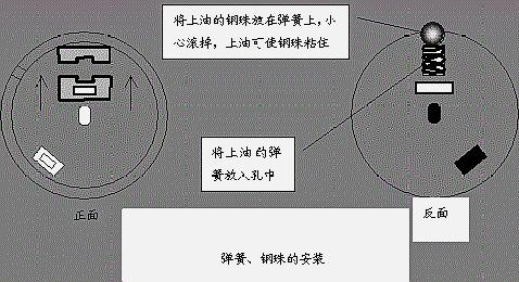 1、取出弹簧和钢珠,并将其放人凡士林油中,将加上润滑油的弹簧放入电刷旋钮的小孔中,钢珠黏附在弹簧的上方,注意切勿丢失。
