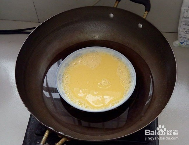 3/6加小半碗水用筷子把鸡蛋搅匀至起泡泡