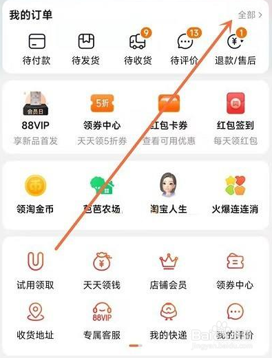 打开淘宝,在个人中心界面,点击我的订单。