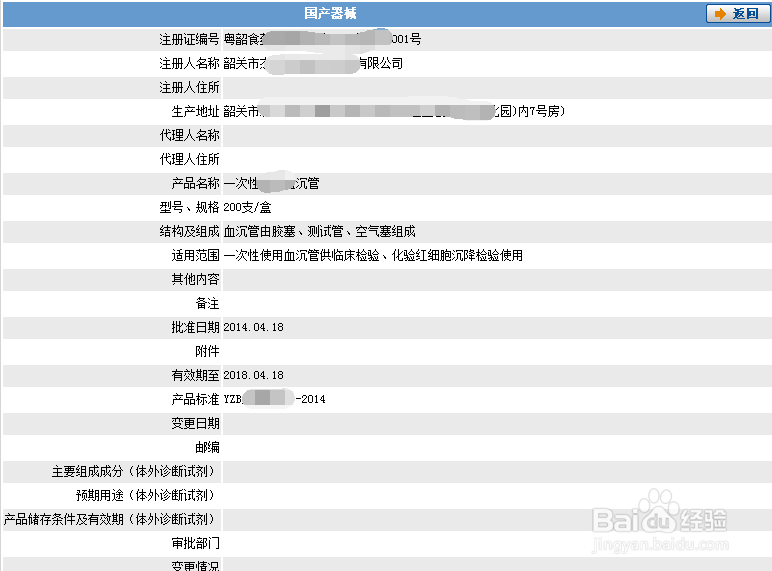 4/5点击查询后看到相关的记录,记录会显示产品名称、注册号、注册人(即公司)。