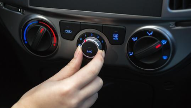 2、开启空调降温时,按下AC按键,有指示灯亮起,汽车空调制冷压缩机开始工作,出风口吹出冷风,使车内的温度得以降低。需要制冷开启空调时,按下AC键,再把温度选择开关调到蓝色部分即可。