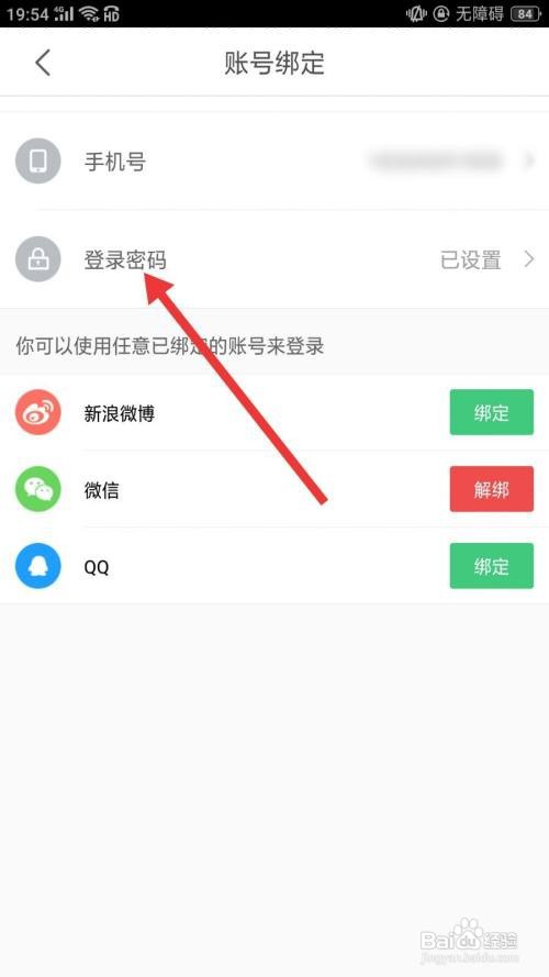 4/5进入到账号绑定界面后,我们再点击登录密码选项即可。