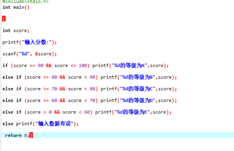 else if (score 0 score 60) puts(%d的等级为E,score);