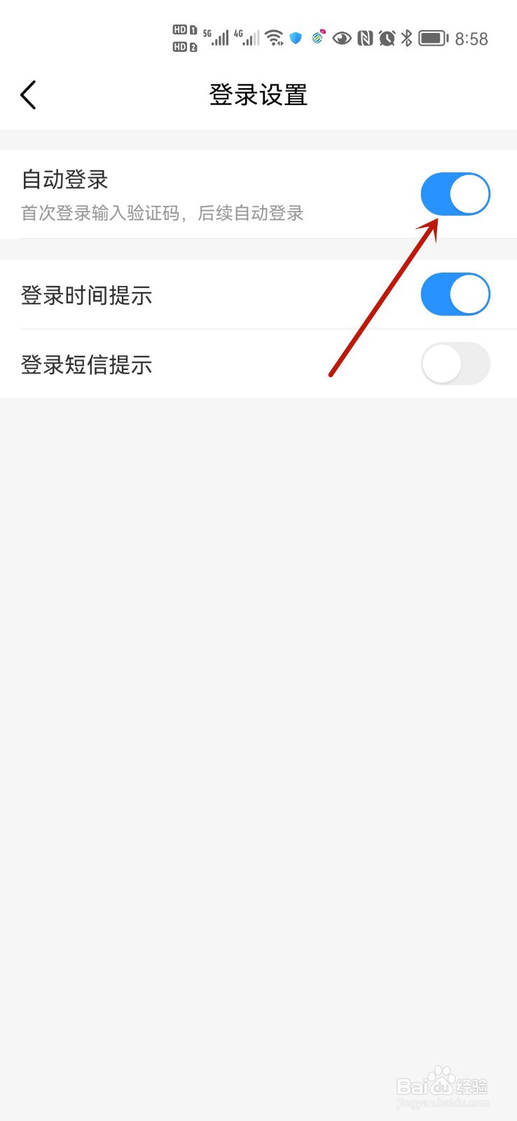 4/4在登录设置页面,开启自动登录功能即可。